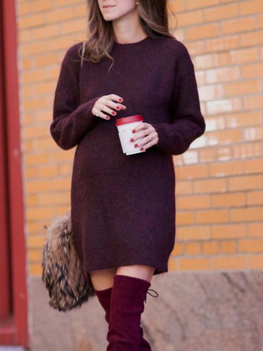 Product:Fashion Casual Comfortable Knitted Solid Color Dress For Pregnant Women