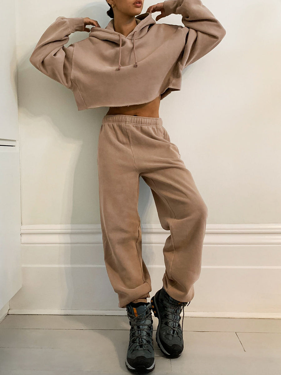 Product: Fashion Casual Hooded Solid Color Two-piece Suit